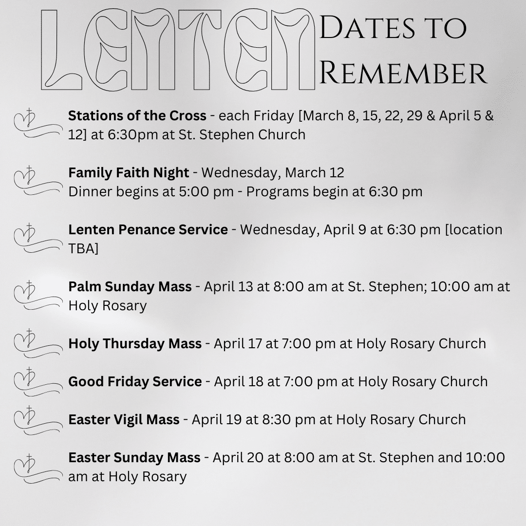Lenten Dates To Remember